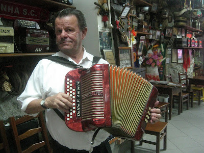 De Arcos de Valdevez à bucólica Ponte da Barca é um pulo de não mais de cinco quilómetros, o que separa o Vez do Lima. Em Arcos (nos Arcos, como diz toda a gente) antes de me fazer ao caminho, cruzei respeitosamente a entrada da Igreja da Lapa e fui bater à porta da famosa Tasca do Delfim, um santuário pagão de concertinas do mundo inteiro. “Toquei muito por todo o lado, aqui em Portugal, nos Estados Unidos, Brasil, Canadá, Venezuela. Só a França fui 220 vezes”, explica sorridente Delfim Amorim “e em todo o lado onde ía comprava mais uma concertina com o dinheiro que ganhava”.