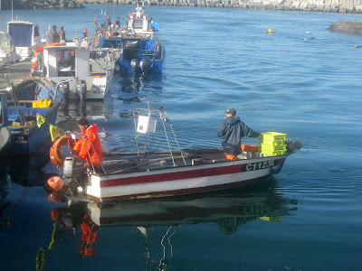 Na manhã de ontem, a borrasca para trás das costas, os barcos vermelhos e verdes e azuis chegam à pequena lota numa alegria de faina de Verão. “Tomara a gente no Verão ter tanto peixe como hoje. Há mais peixe que clientes”, desabafa uma peixeira. Na verdade, há muita gente regateando o pescado, protegido do sol de Outubro por guarda-sóis multicoloridos onde pousam desavergonhadas as gaivotas. Os pescadores, terminada a pesca, atravessam a estrada e enfiam-se no Café “Golfinho”, entre os seus, redes e motivos de pesca nas paredes. “Hoje sim, já não pescavamos assim há muito tempo”.